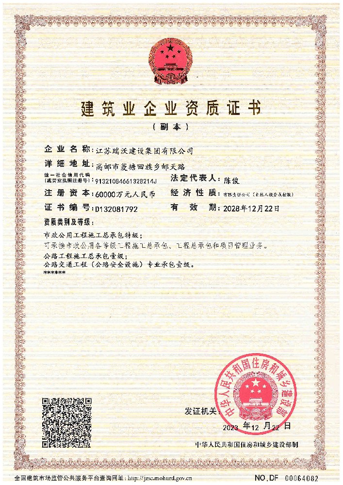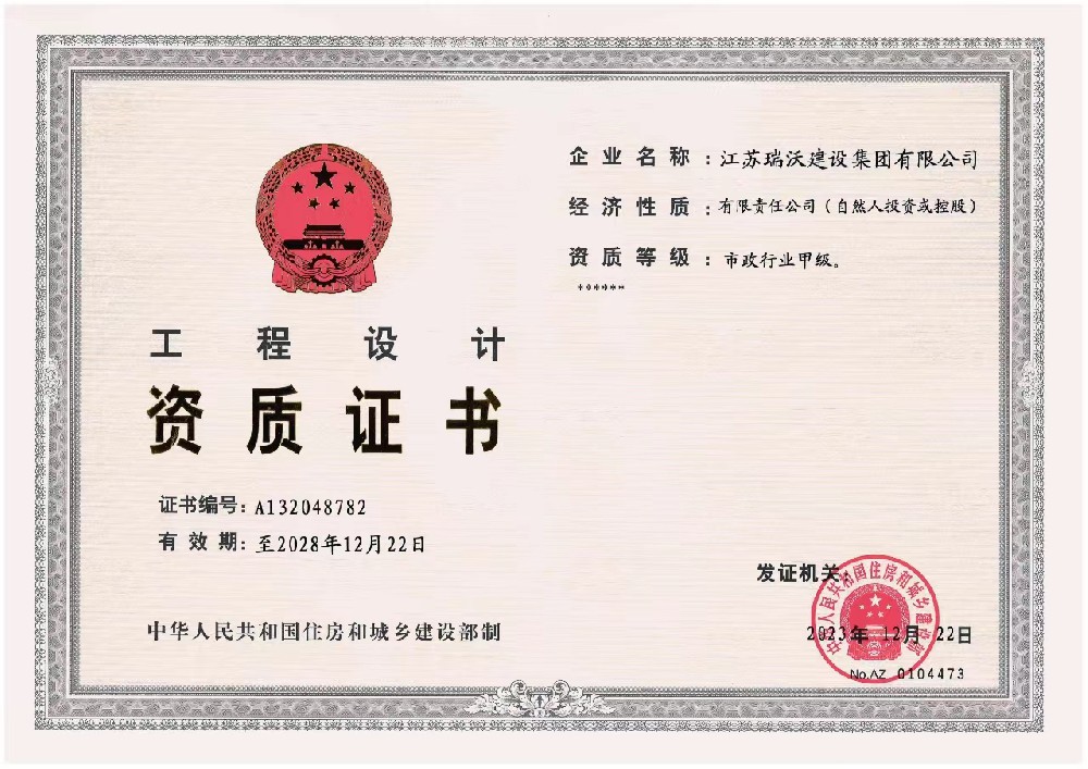 江蘇瑞沃建設集團有限公司成立于2007年,是一家以市政、交通工程建設為主導,集房屋建筑、交通安全設施、城市道路照明工程、電力工程、隧道工程、航道工程及投融資為一體的綜合性企業(yè)。企業(yè)注冊資本60000萬元,現(xiàn)有各類技術(shù)人員580人,其中中、高級以上人員498人,注冊類人員268人,一、二級建造師166人。公司榮獲“江蘇省建筑業(yè)優(yōu)秀企業(yè)”、“江蘇省五一勞動獎狀”,連續(xù)多年被評為“揚州市先進企業(yè)”、“江蘇省建筑業(yè)百強企業(yè)”,連續(xù)八年蟬聯(lián)百強企業(yè)基礎設施類第一名。