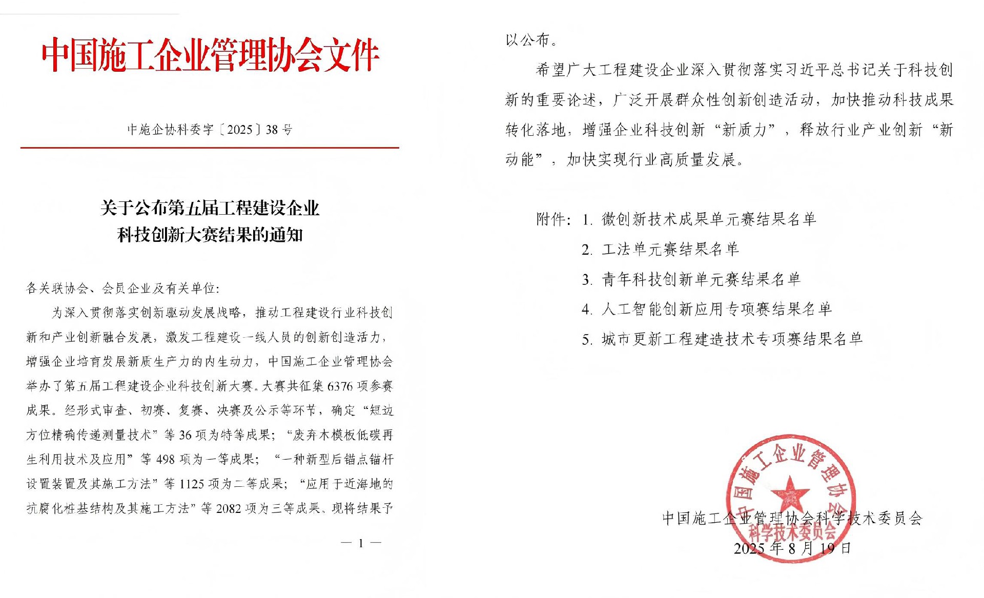 近日,第五屆全國工程建設企業(yè)科技創(chuàng)新大賽獲獎結(jié)果出爐,集團在“青年科技創(chuàng)新單元賽”中斬獲一···